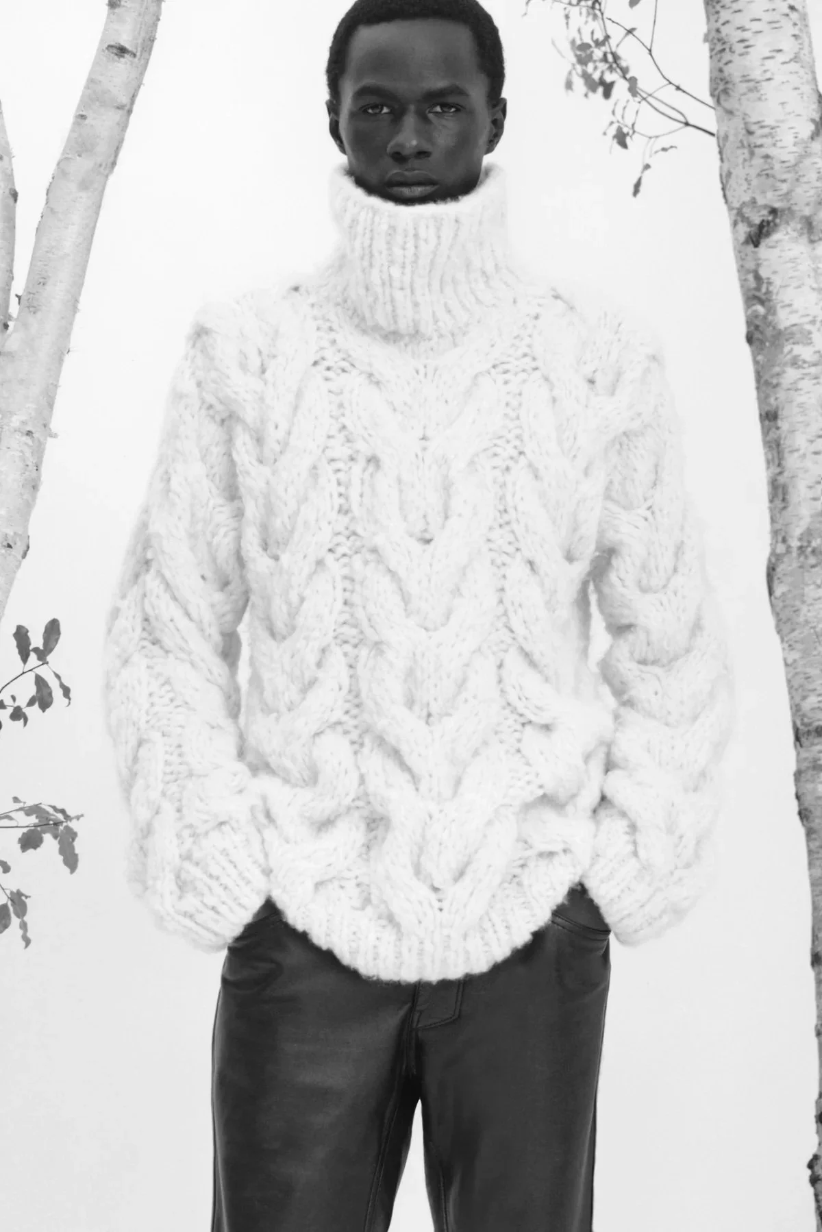 Clean, classic responsible design embodies the Gabriela Hearst brand. And she continues this for fall. Innovations are delivered through double-face recycled cashmere outerwear and eco cashmere bouclé bombers. The Aran chunky sweaters provided coziness, while most of the collection focused on Ms. Hearst's strength which is tailoring. Sharp outerwear is an investment that brings up another element of the presentation that addresses the environment - timelessness. Hearst will also be repurposing fabrications from the men's offering with the Fall '23 women's collection.